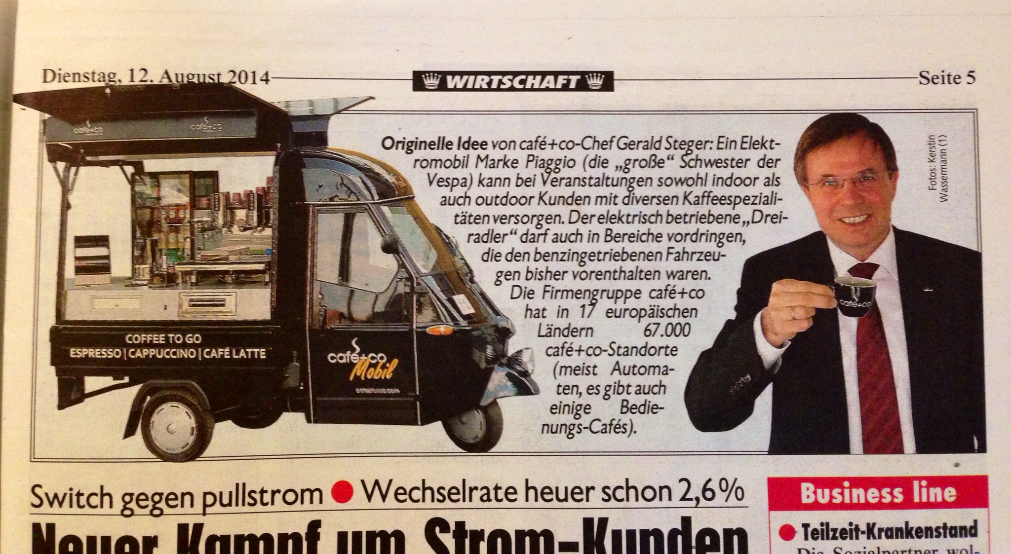 Gerald Steger von „cafe+co“ ist, nur weil er die Eletro-Ape ausgewählt hat, trotzdem nicht Erfinder, Innovator oder Kreativer, er kopiert die erfolgreichen Startups und das macht kein gutes Image!