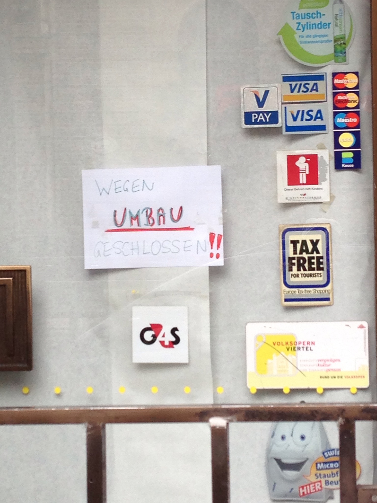 Das schaut nach „klinisch tot“ aus, also niedrige Miete (das Geschäft in der Alserbachstraße gibt’s seit einer Ewigkeit, hat also sicher einen uralten Mietvertrag, vielleicht sogar mit Friedenszins) und dann halt einfach ein paar Monate geschlossen lassen, statt im Eisenwaren-Geschäft die Füße plat stehen vor lauter Langeweile…