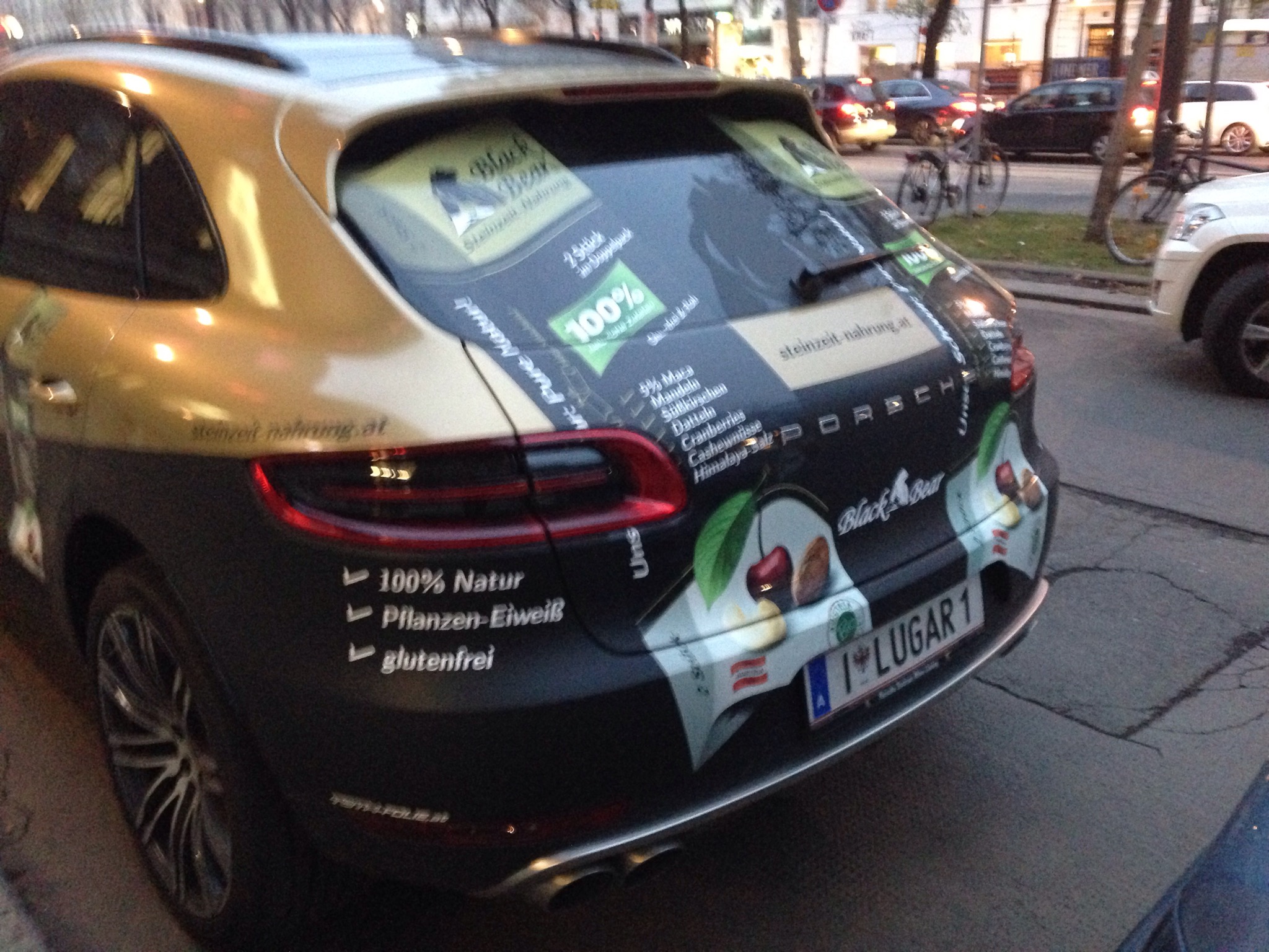 Auf der VEGAN-Messe im MAK (Museum für angewandte Kunst) in Wien mit dem Geländewagen von Porsche Vorfahren um die „Lifestyle-Ernährung“ dort zu präsentieren! Macht mächtig reich 😉 „100% Natur“ steht immerhin am Auto drauf…