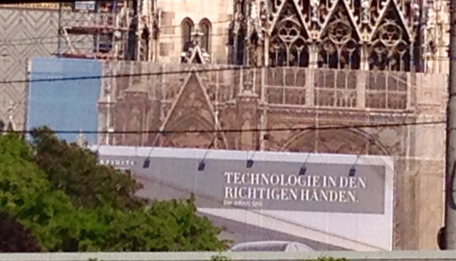ein Anachronismus? Aktionismus? Selbstkritik? Ungeschickte Werbung oder vorschnelle Freigabe eines Werbesujets am Hauptportal der Votivkirche in Wien 9?
