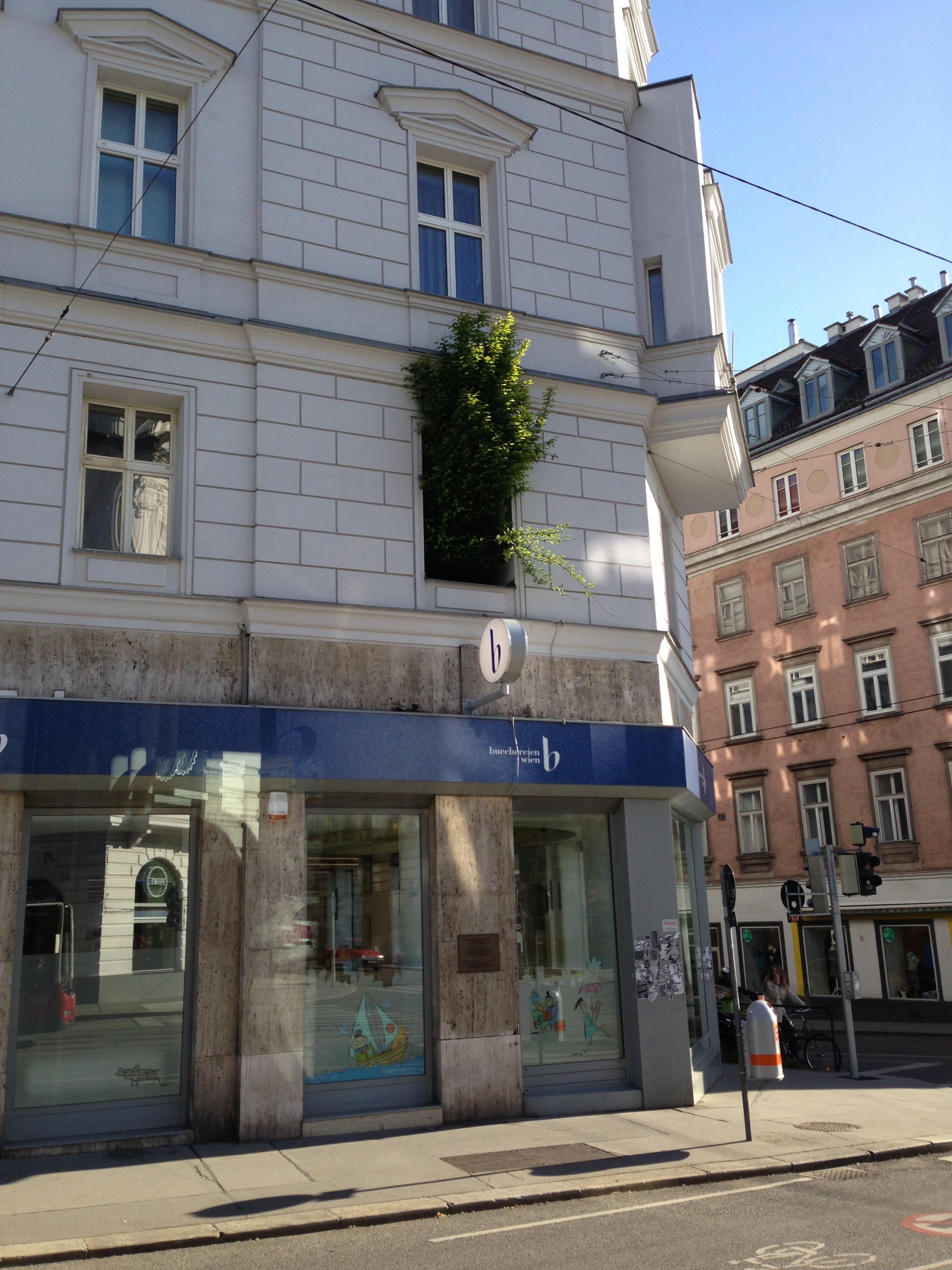 Dieser Baum im 9. Bezirk ist zwar nicht groß, aber eines der beliebtesten Foto-Motive neben der Strudelhof-Stiege und lenkt die Aufmerksamkeit somit auch auf die Bücherei der Stadt Wien, einen Stock tiefer 🙂