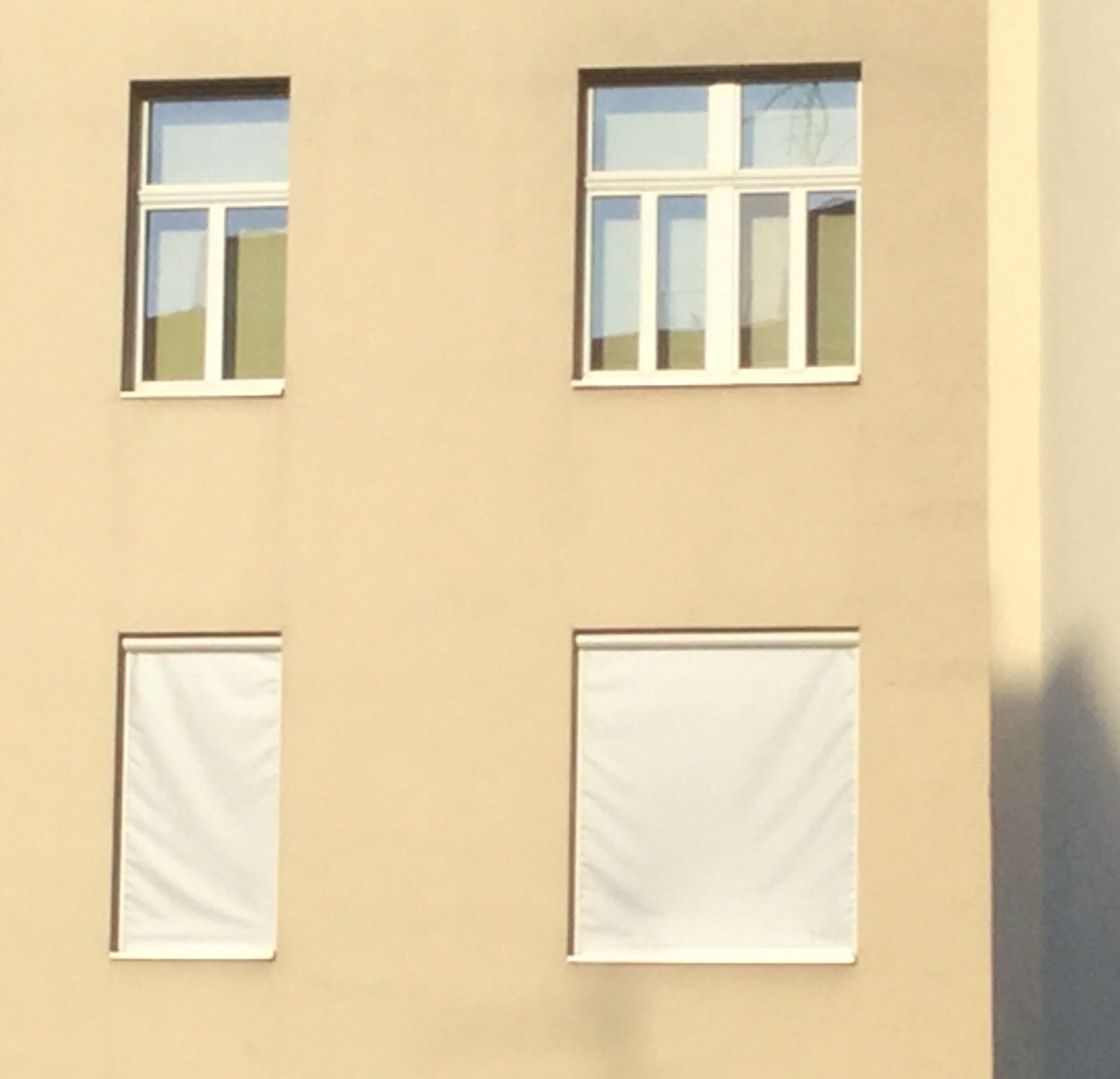 Aus dem Architekturstudium blieb bei mir unter anderem noch hängen: Sonnenstrahlen VOR dem Auftreffen auf’s Fensterglas „abblocken“ bringt einen viel größeren Effekt als eine innenliegende Rollo! Siehe Foto unten…