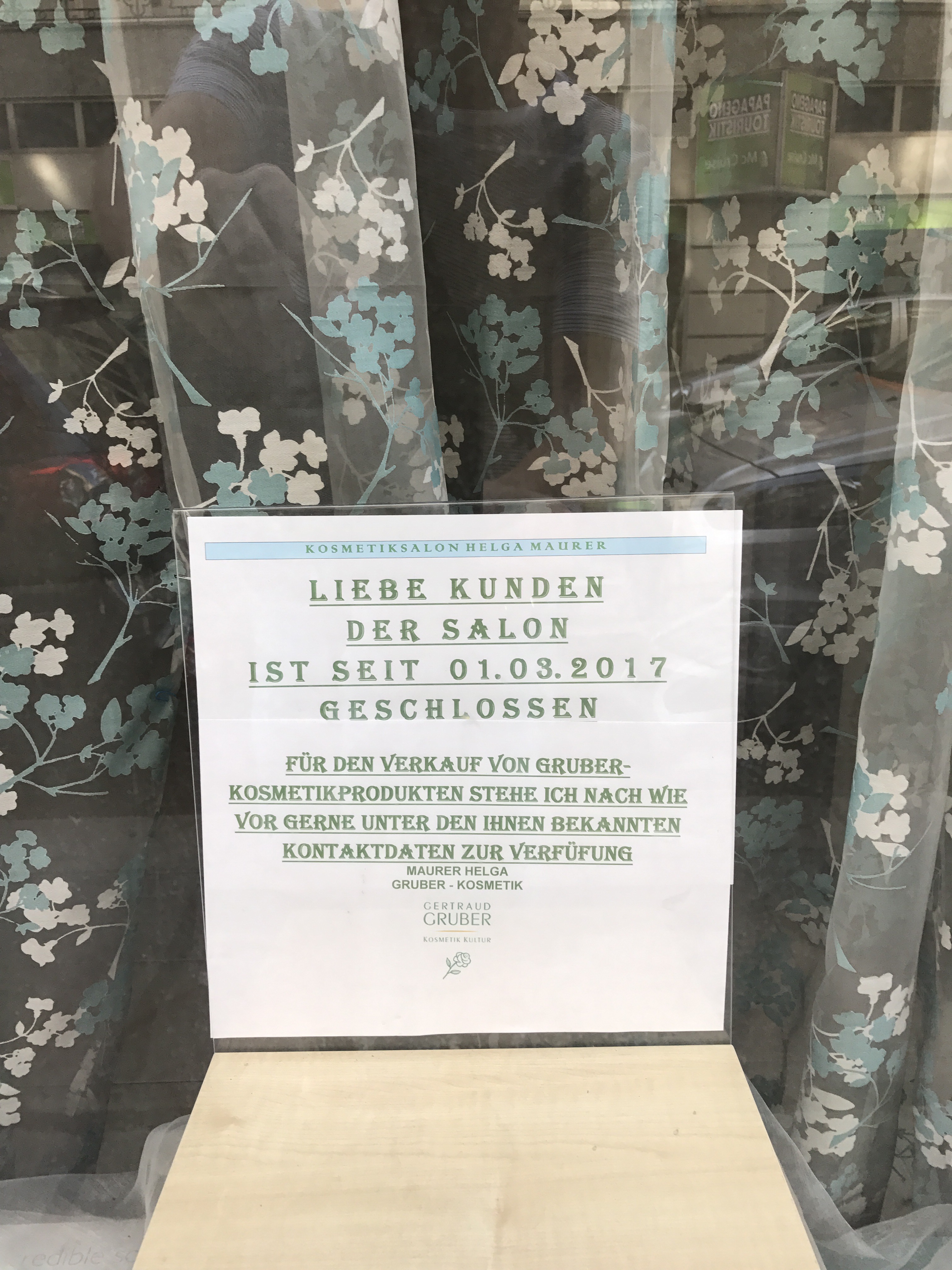 Dieser kleine Salon war in den 1970er-Jahren sehr fesch, 1980 schon „retro“, ab 1990 dann „verstaubt“, um das Jahr 2000 dann schon ziemlich leer und ab 2010 dann eher Mitleid-erregend 😦