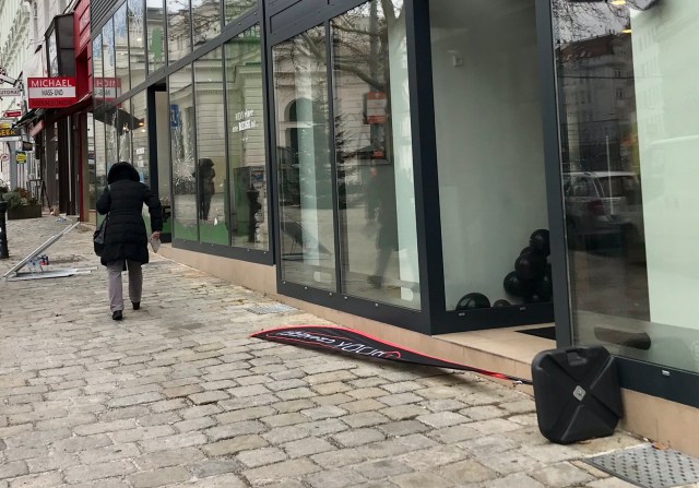 Viele wissen’s nicht, aber Werbung auf der Straße vor Deinem Shop/Studio/Büro/Institut bedeutet auch dafür Verantwortung und Haftung zu übernehmen! Dass der A-Ständer (links im Bild) schon 8 Meter von der kleinen Mucki-Bude „weggeflogen“ ist scheint die/den BetreiberIn der Micro-Fitness-Franchise-Location nicht zu interessieren: ich wollte informieren und aufmerksam machen, es war aber niemand da, kein Hinweis auf Mittagspause oder Öffnungszeiten! Not good ☹️