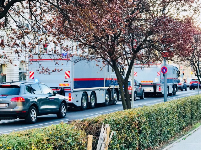 Da fährt ja wieder einmal ganz schön viel Polizei mit dem Gold aus der Nationalbank quer durch den 9. Bezirk von Wien und weiter nach… (geheim!) Keine gute Idee wäre es jedenfalls, diesen Geld- bzw Goldtrsbsport zu überfallen 😉 so viele Begleitfahrzeuge! Polizisten mit schusssicheren Westen und Maschinenpistolen/Sturmgewehren 😮 …besser doch ein seriöses Business aufbauen! 👍🏻😉
